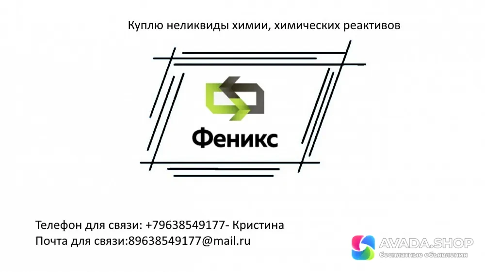Куплю неликвид клей Лейконат, уранин А, Флуоресцеин натрия, Биоцид Раффлезия, ингибитор коррозии, фильтрующий материал, сыпучи сорбент, приобретаю сорбирующий бон, медленный стабилизатор, гипохлорид жидкий, приобретаем Hypochlorite, дезальгин, хлориклар, хлорификс, лонгафор органический, фильтровальный материал. Если вы хотите продать 1-бромнафталин, Водорода перекись 38%, (пергидроль), Калий йодистый "ХЧ", Ртуть (II) азотнокислая 1-водная «чда», Ртуть (II) окись "чда" ф.0, 1, хлористая, роданистая, Серебро сернокислое, "ХЧ", Серебро азотнокислое, "ХЧ", обратитесь в нашу компанию. Если вы хотите продать аниониты, Гидразин-гидрат 100%, 64%, 35%, моноэтаноламин, щавелевая кислота, белила цинковые, хромовый ангидрид, цинк хлористый. Если вы не знаете, что делать с старым просроченными питательными средами, среда агар, среда гисса, среда магниевая, среда эндо у которого вышел срок годности не торопитесь сдавать его на утилизацию, позвоните нам и специалисты нашей компании помогут решить ваш вопрос с образовавшимися у вас неликвидами. Готовы рассмотреть любые предложения, самовывоз, оплата НДС, УСН, наличными.