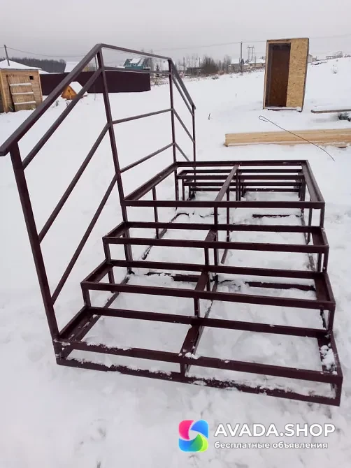 Сварной металлокаркас крыльца и лестницы может выдержать любую нагрузку, он прочен и надежен. Ступени лестницы и покрытие самого крыльца может быть выполнено по желанию заказчика из ДПК, дерева, пробивной лист. Перила могут быть простые или содержать элементы ковки. Все детали обговариваются индивидуально с заказчиком.