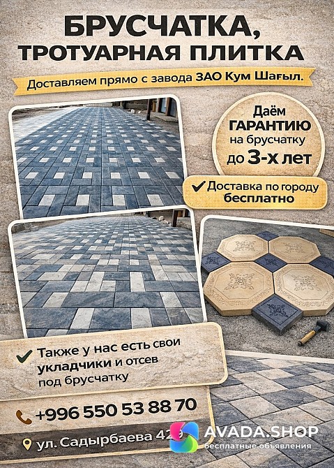 Брусчатка, тротуарная плитка. Гарантия до 3х лет