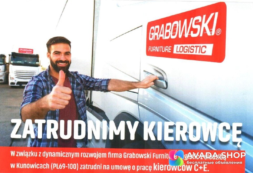 В связи с динамичным развитием компании Grabowski Furniture Logistic расположенной в Куновицах (PL69-100) мы нанимаем на работу водителей C+E.