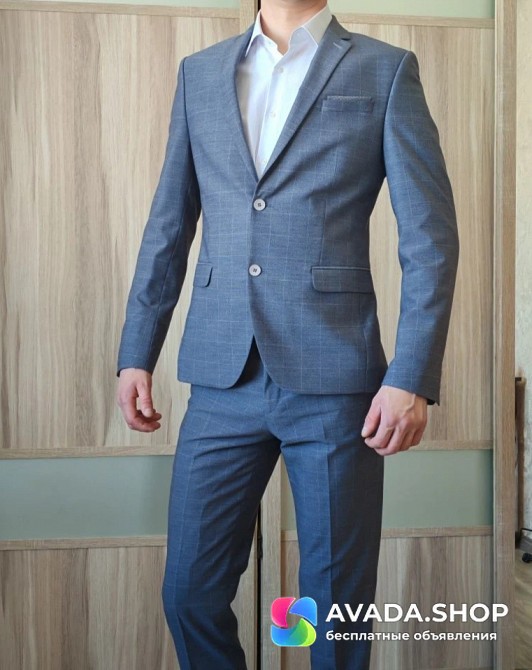 Стильный, фирменный костюм клетка. с ним в комплекте две рубашки и галстук в подарок.