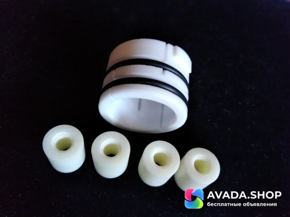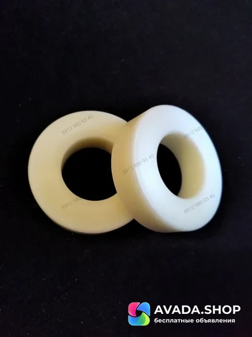 Втулка изготавливается из капролона ПА-6. Капролон нередко используется вместо металлов, при этом он в 6-7 раз легче стали, а это значит, что изделия из него отличаются очень малым весом при большой прочности, капролон применяют при изготовлении подшипников, устойчив к коррозии, характеризуются износостойкостью, низким коэффициентом трения и эффектом самосмазывания. Помимо этого, капролон используется для изготовления шестерней, лопастей насосов, различных корпусов, роликов конвейерных лент и т.д.